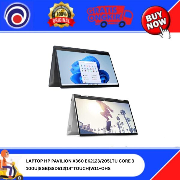 LAPTOP HP PAVILION X360 EK2123/2051TU CORE 3 100U|8GB|SSD512|14″TOUCH|W11+OHS
